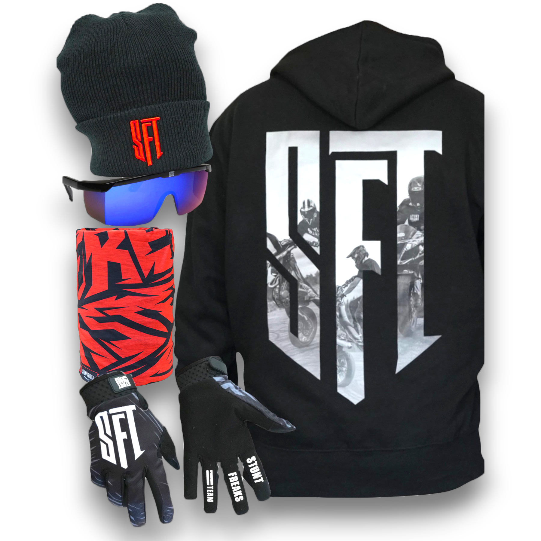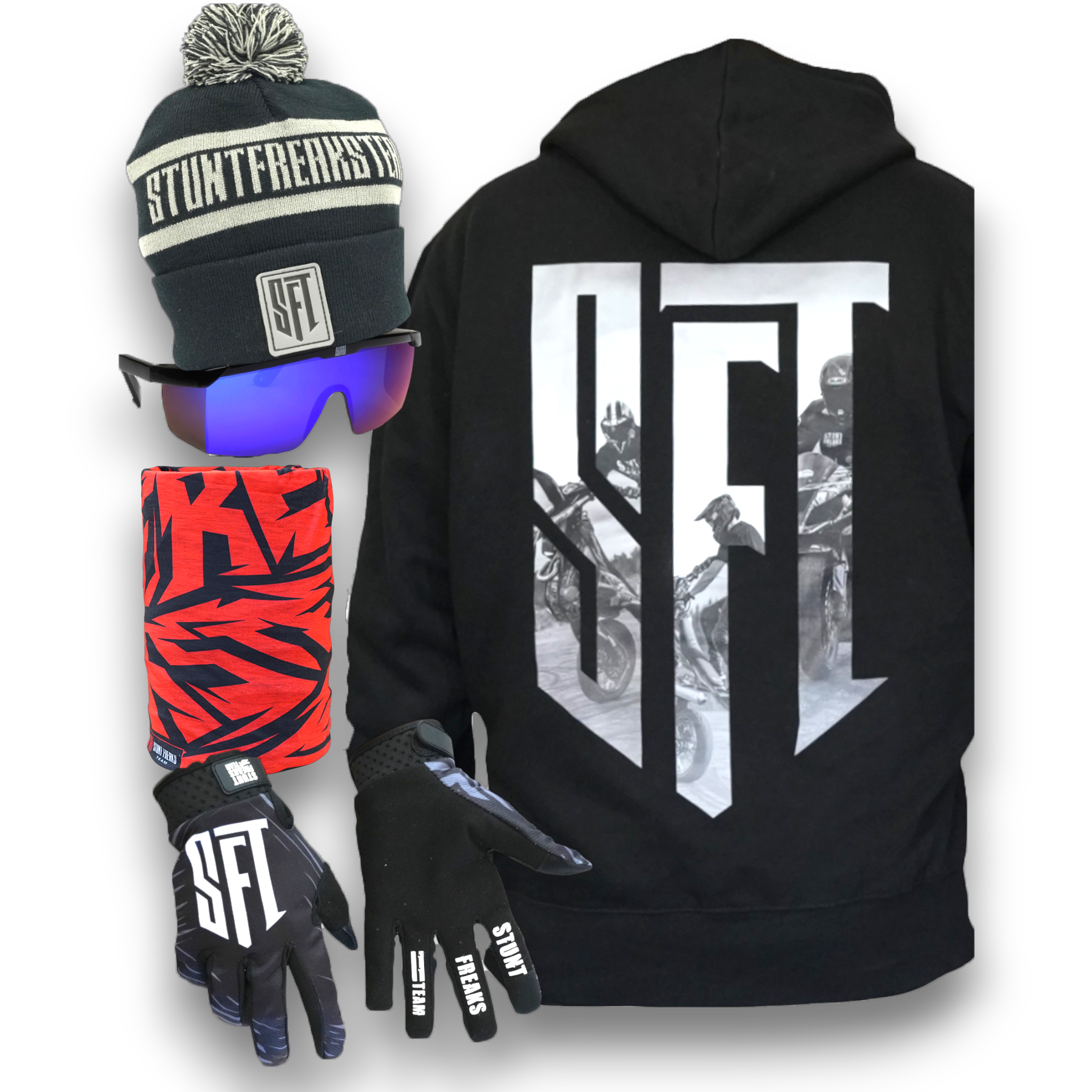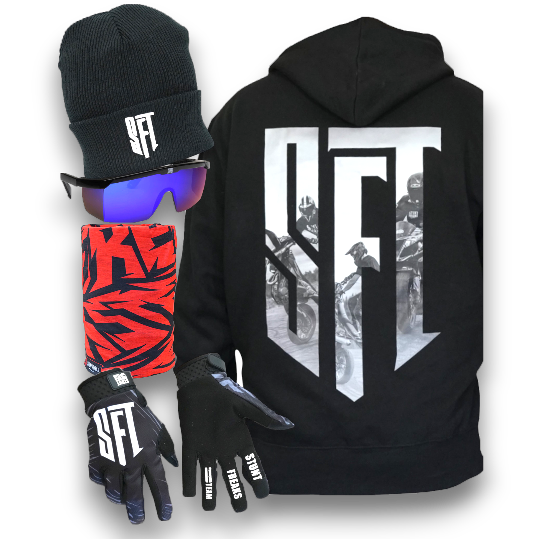 SFT Beanie Bundle includes everything you need for sunny winter days. Perfect for keeping warm and stylish on the track or slopes.