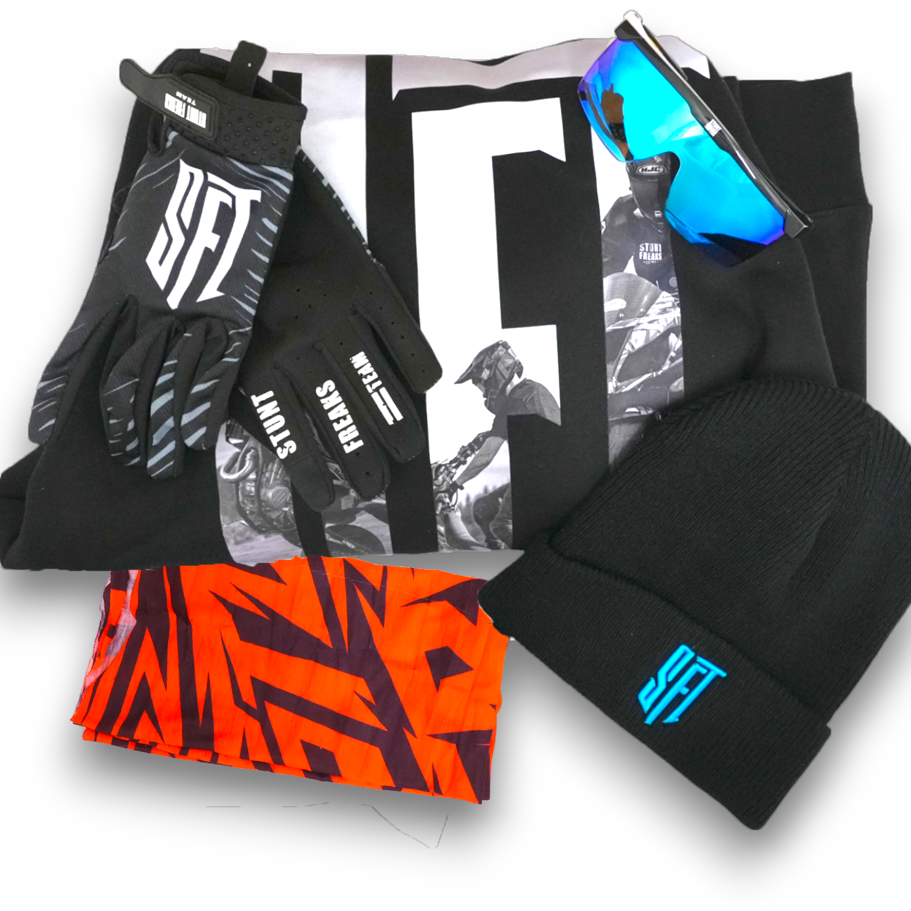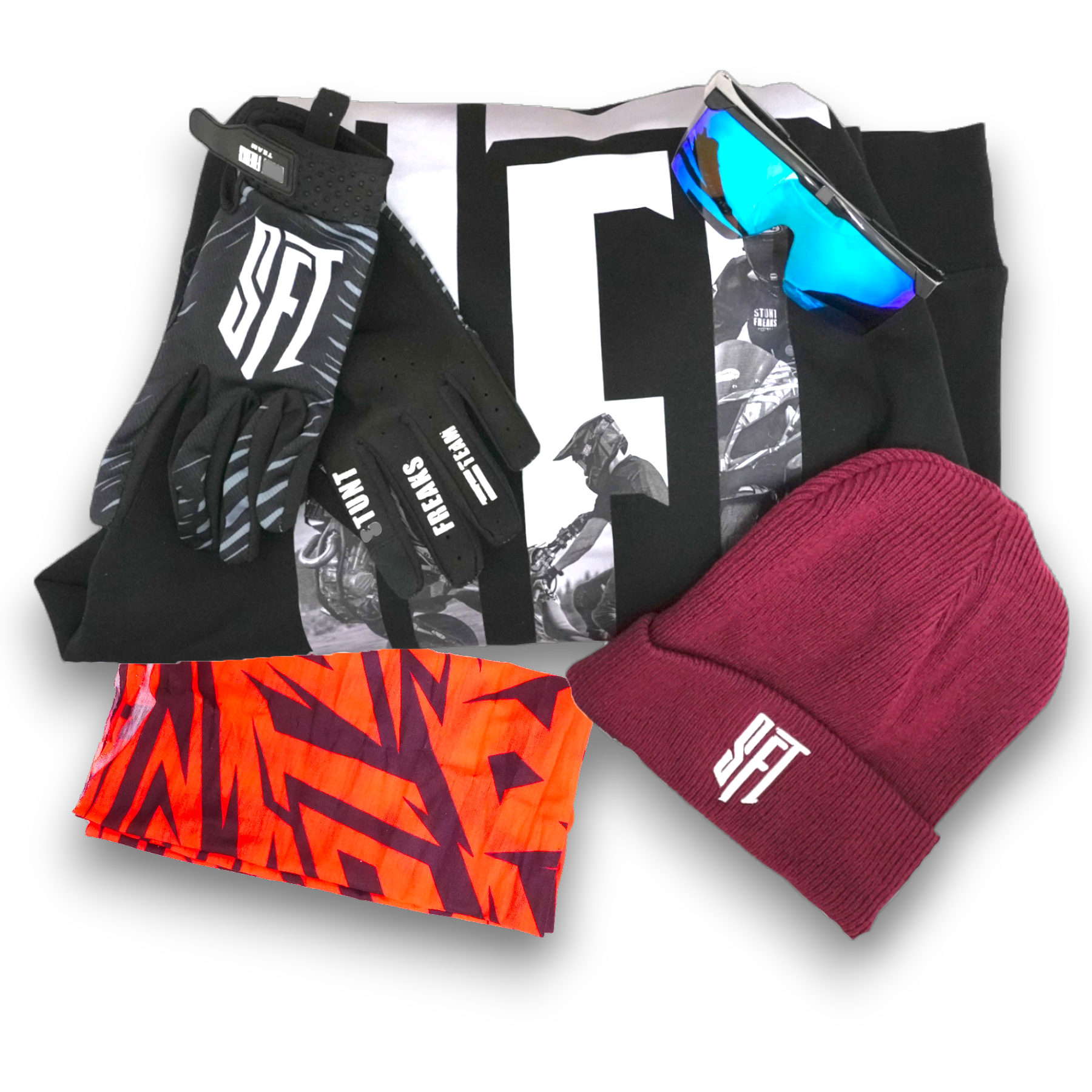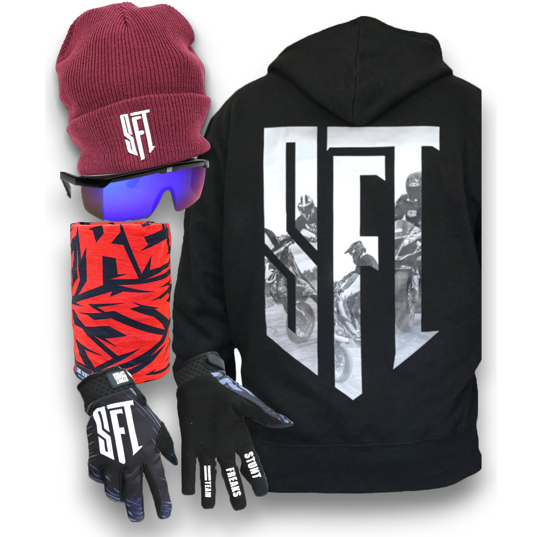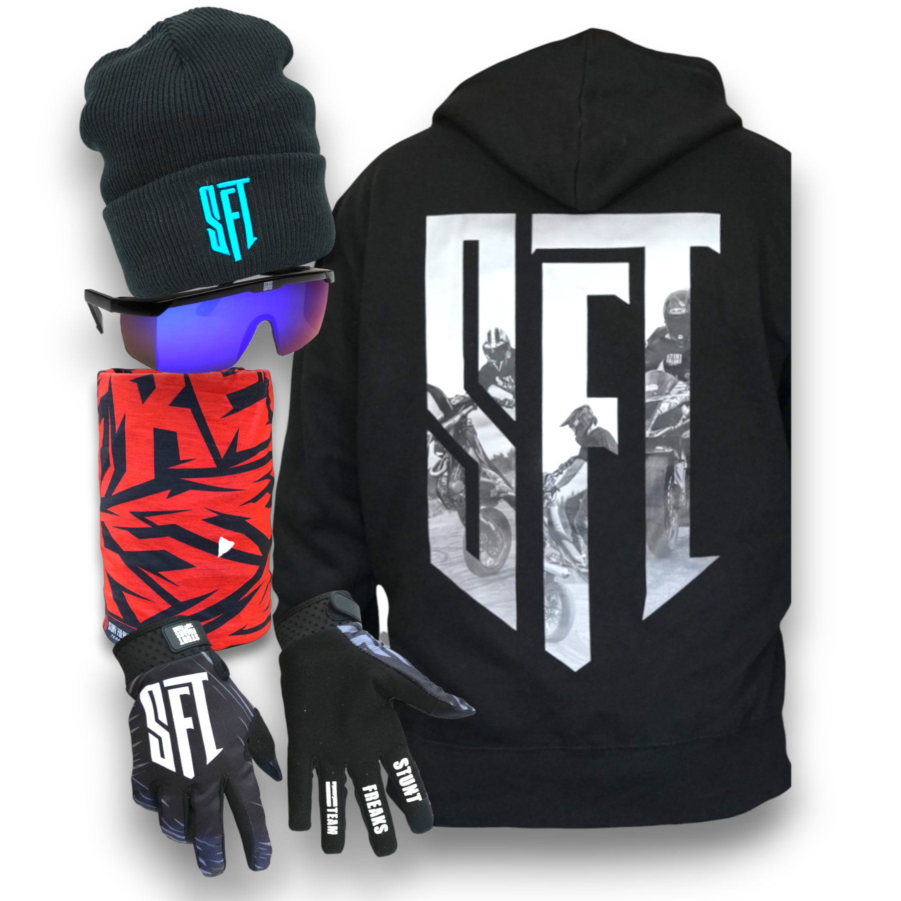SFT Beanie Bundle includes everything you need for sunny winter days. Perfect for keeping warm and stylish on the track or slopes.