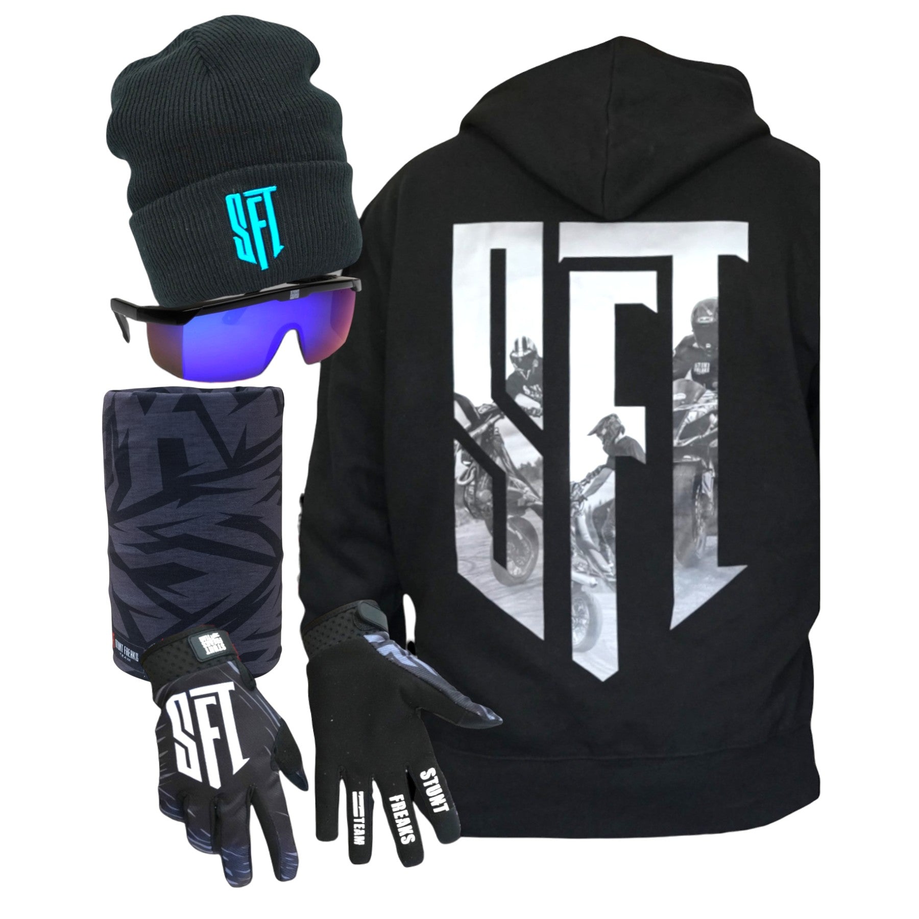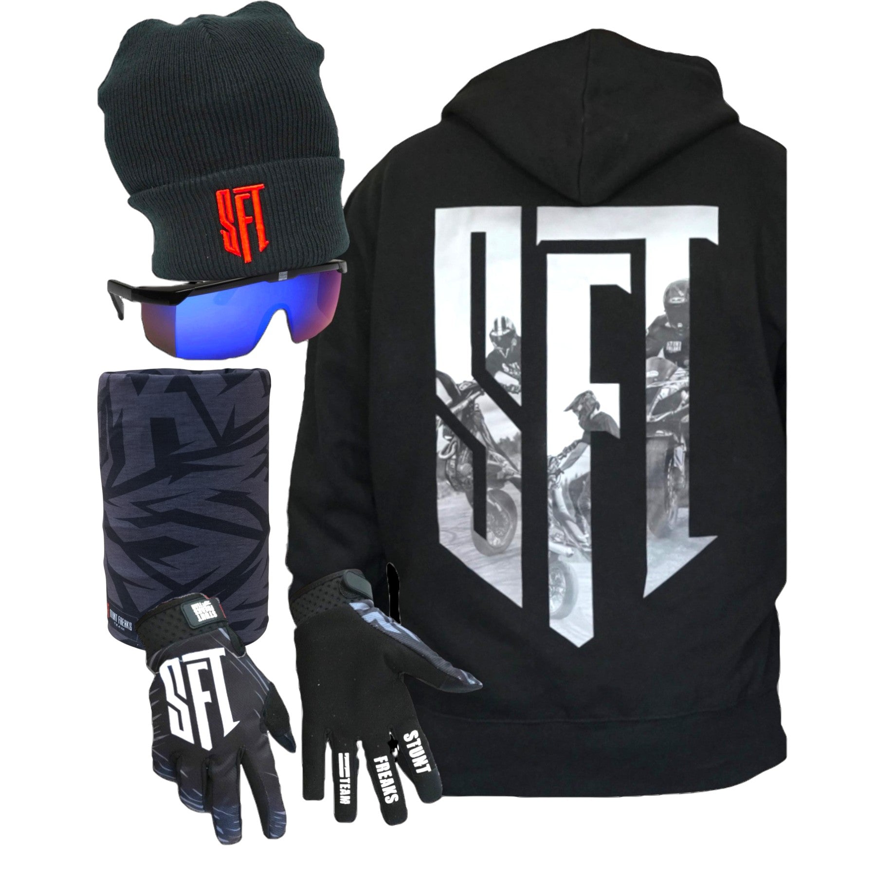 SFT Beanie Bundle includes everything you need for sunny winter days. Perfect for keeping warm and stylish on the track or slopes.