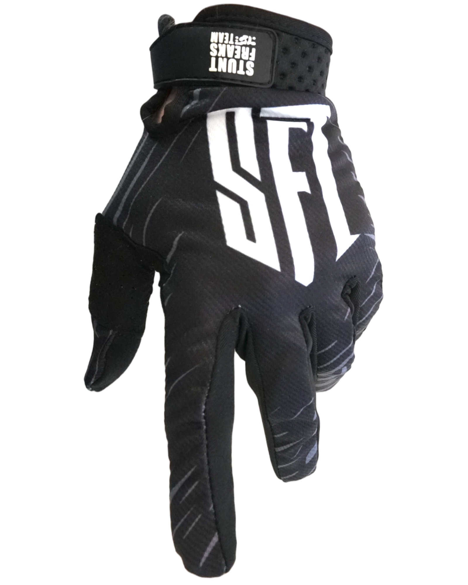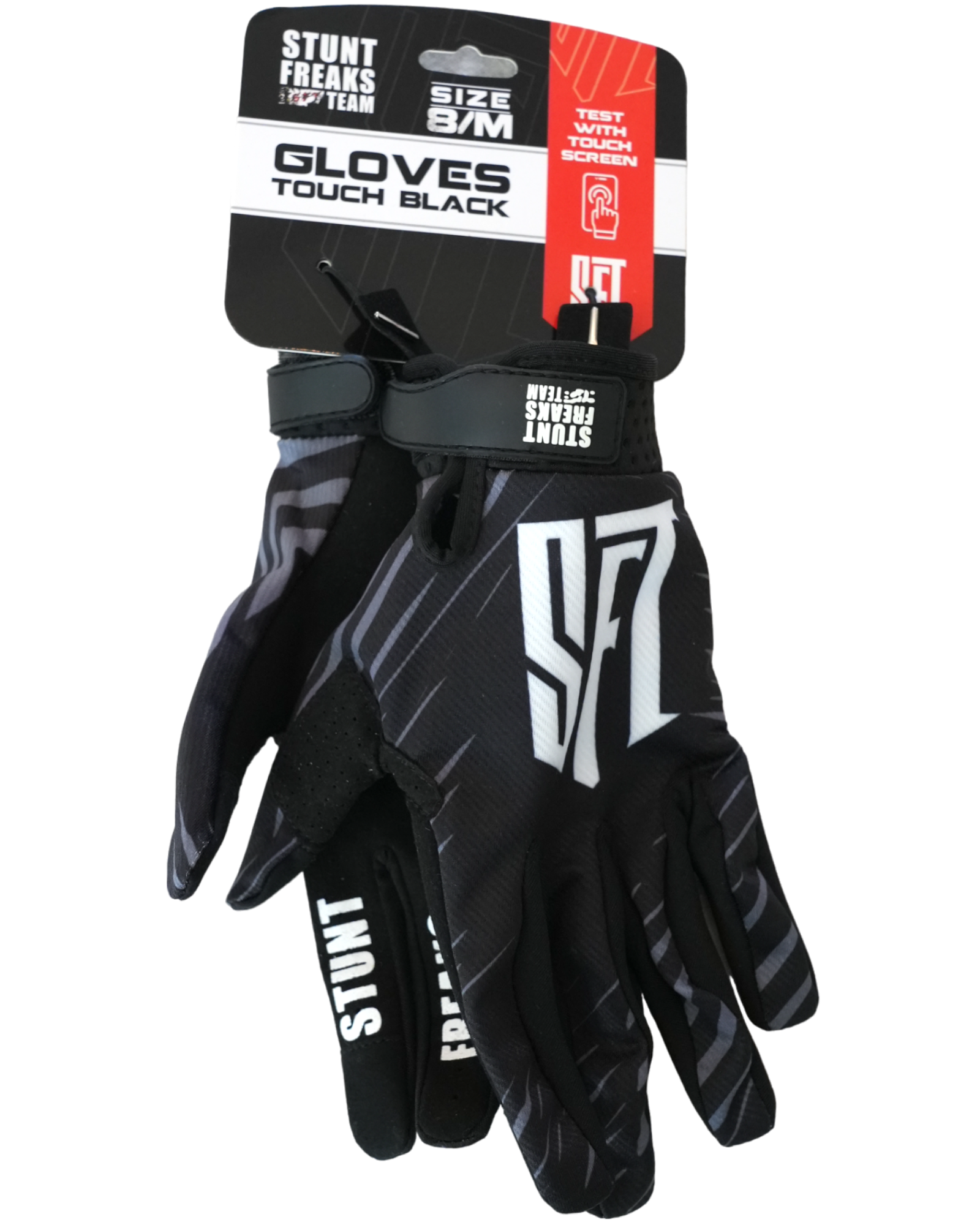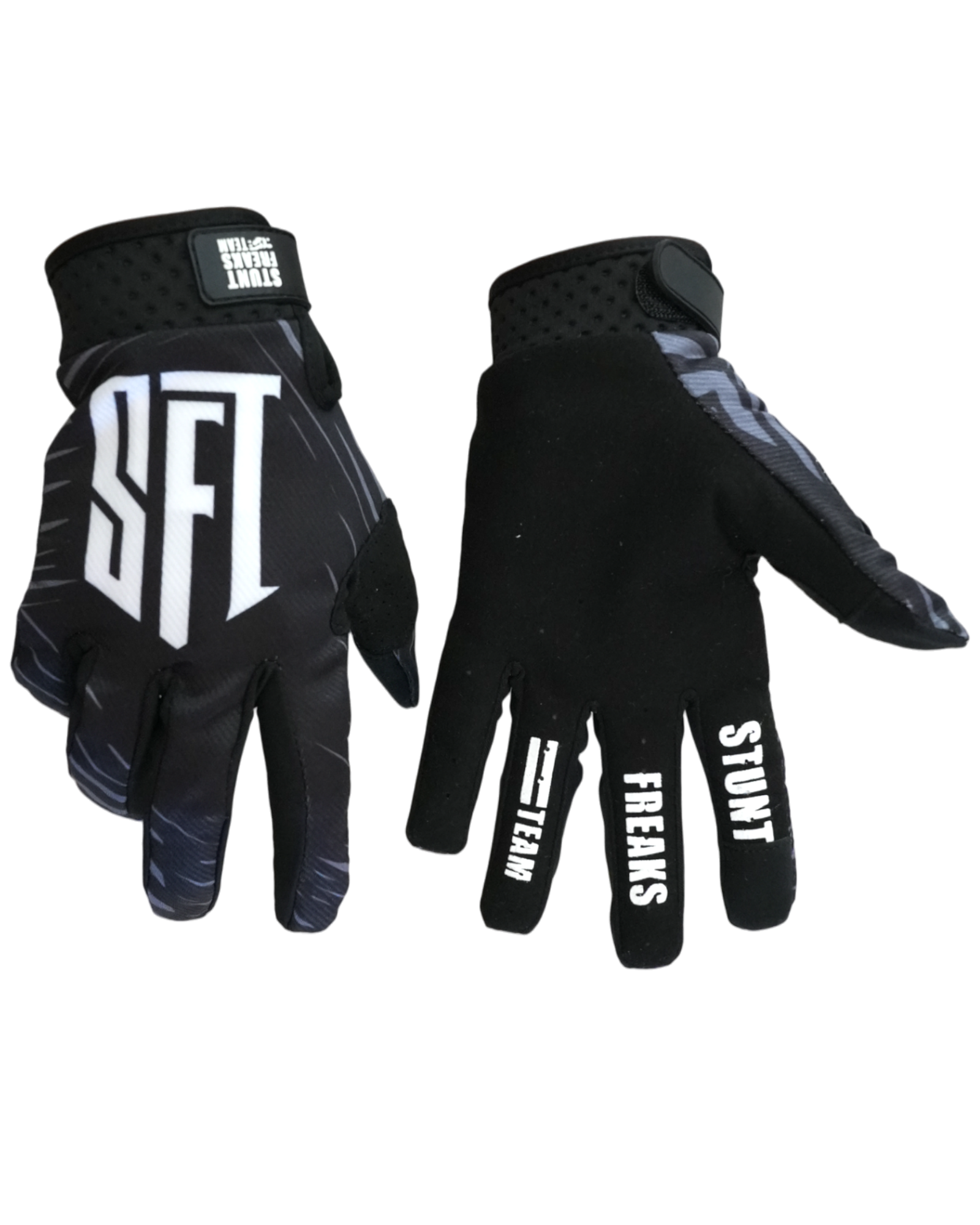 Introducing SFT Touch Gloves - the ultimate choice for motorbike riders. With touch screen-compatible fingertips, exclusive Stunt Freaks Team graphics, and durable, breathable materials, these gloves elevate your performance and style on the bike.